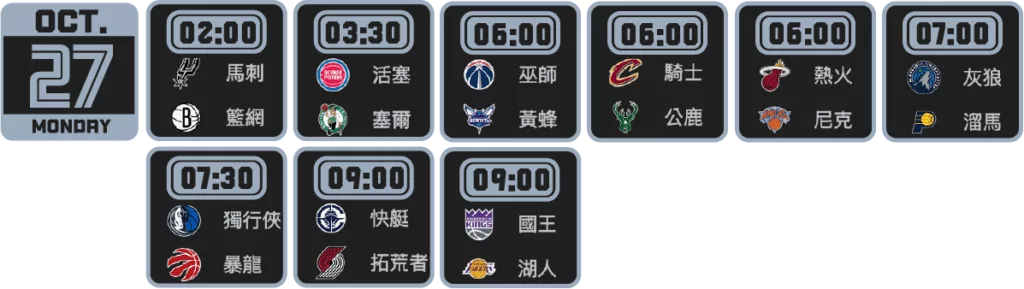 進入黃金時段,公鹿與騎士強權對決,Giannis 對上 Mitchell 的戲碼無疑是明日最受矚目的東區焦點;熱火與尼克的宿敵之戰同樣話題十足,雙方防守火力勢必擦出火花。灰狼與溜馬的比賽則是年輕核心對決,Edwards 與 Haliburton 將再度上演速度與創造力的對拼。