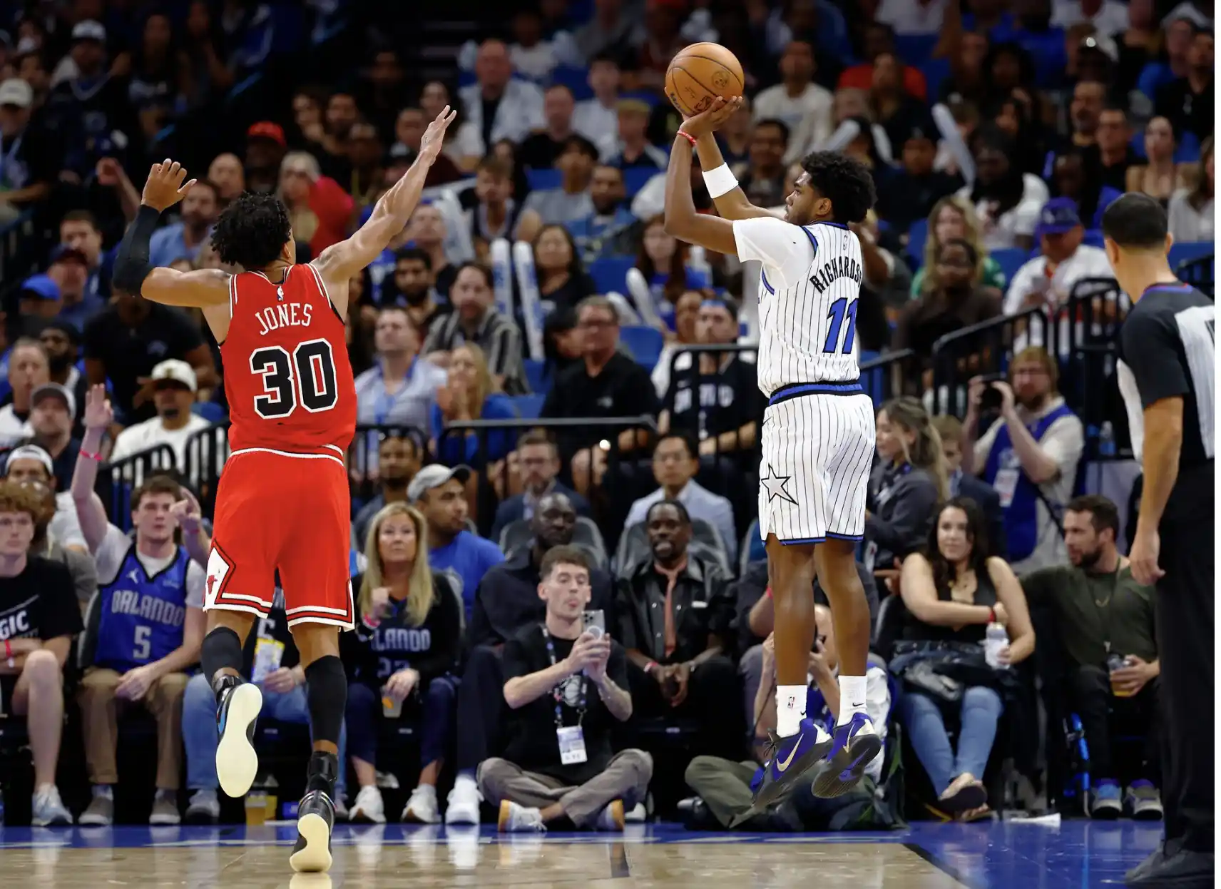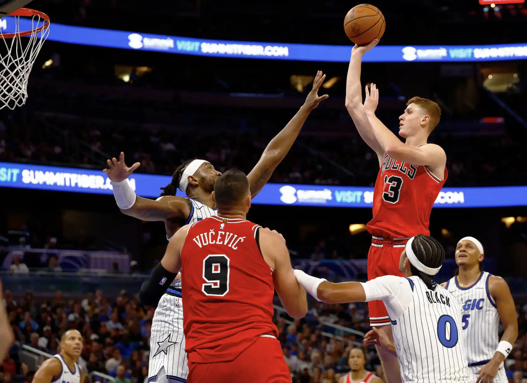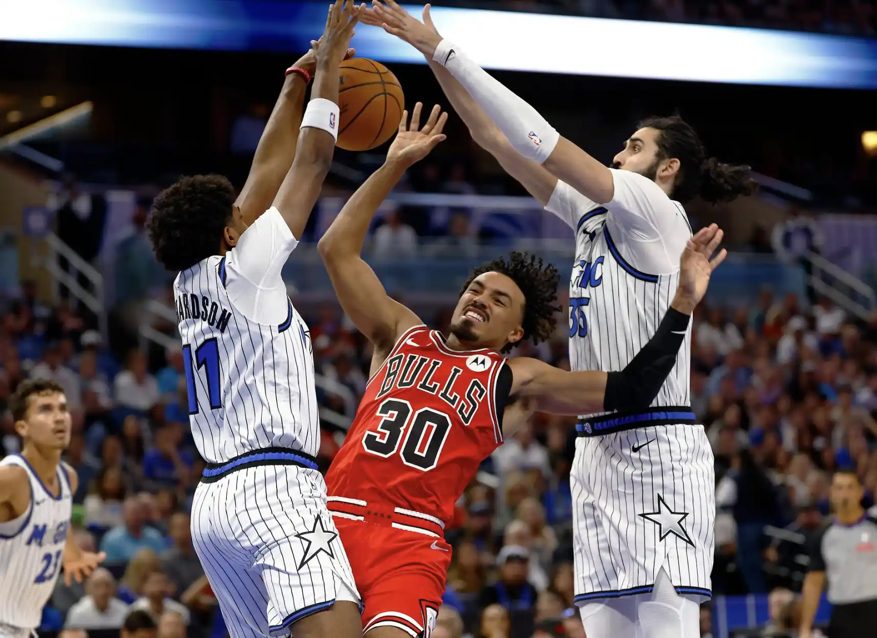 下半場戰局轉為防守拉鋸。魔術試圖以高位擋拆拉開空間,但多次被公牛後場雙槍 LaVine 與 Caruso 的聯防化解。第三節末段,公牛打出一波 11:2 的攻勢將分差拉開至雙位數。魔術雖在第四節嘗試反撲,但球隊命中率下滑且籃板落後,始終無法重新建立節奏。