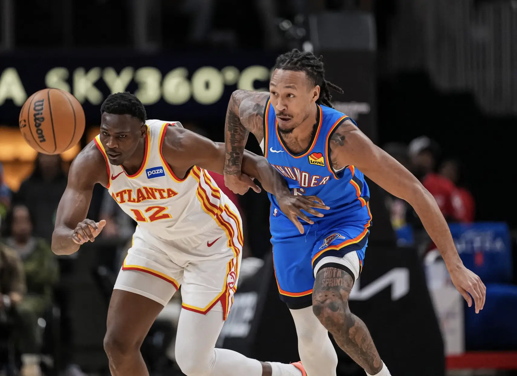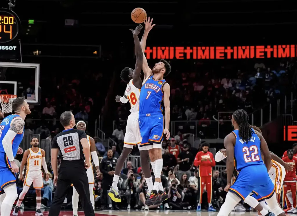雷霆在主場延續火燙手感,以全面的團隊進攻與防守節奏掌控拿下勝利。開局階段雙方節奏明快,Shai Gilgeous-Alexander(SGA)與 Trae Young 互相對飆三分與切入得分。老鷹首節靠著 Dejounte Murray 的防守與轉換進攻一度領先,但雷霆第二節展現強勢攻勢,SGA 連得 10 分率隊打出 15:2 高潮,半場結束時取得兩位數優勢。
