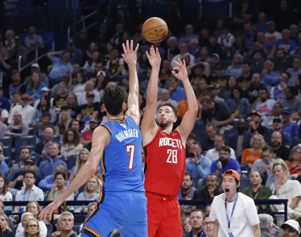 在主場進行奪冠戒指頒發儀式的雷霆,開幕戰就陷入與火箭的肉搏戰。整場比賽節奏極快、得分高漲,雙方幾乎打滿 58 分鐘才分出勝負。雷霆當家球星 Shai Gilgeous-Alexander 再度展現「關鍵先生」本色,在第二個加時剩 2.3 秒時兩罰全中,最終以 125 比 124 險勝火箭。