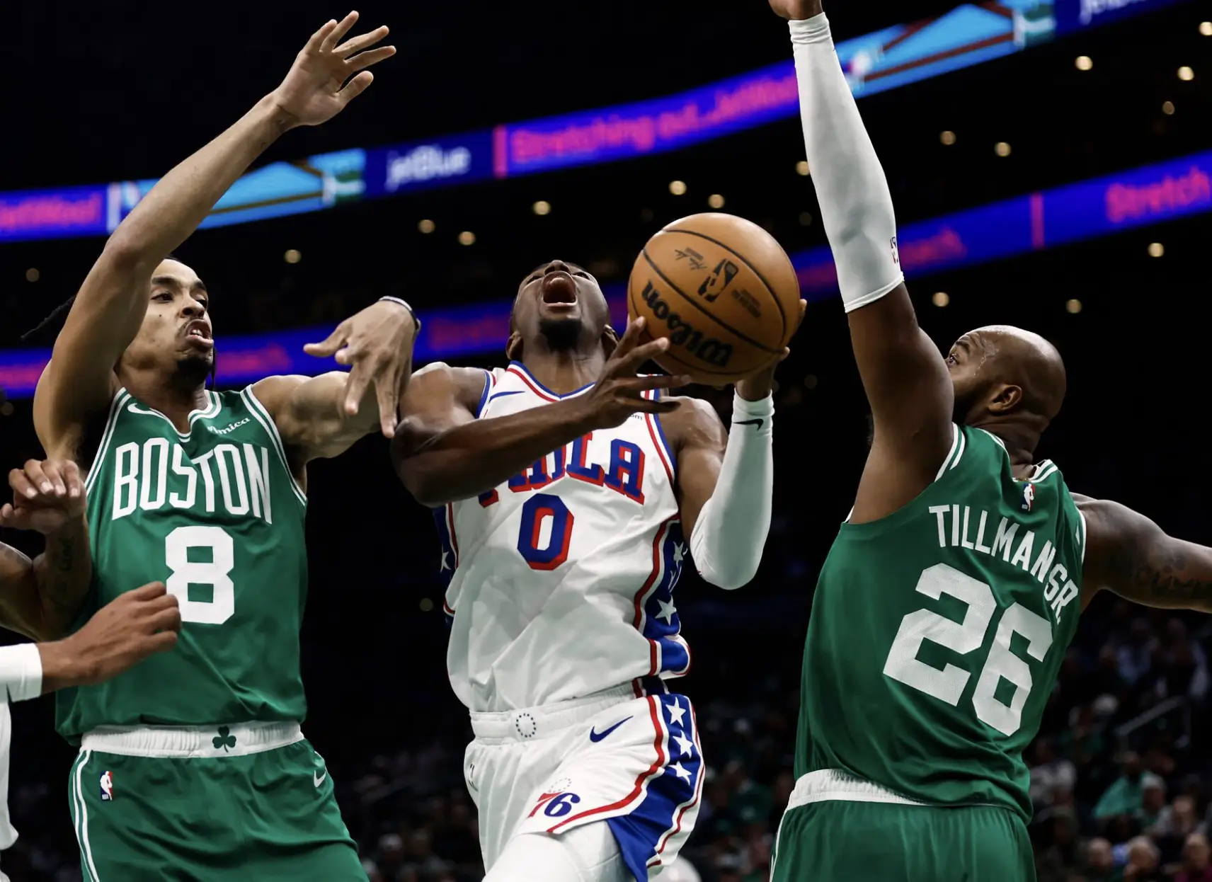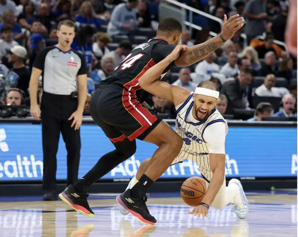 第三節開始後,魔術加快節奏。薩格斯在防守端製造兩次抄截,一次轉換快攻的暴扣徹底帶動全場。邁阿密則陷入進攻停滯,連續四次出手打鐵。進入第四節,雙方開始拉鋸,巴特勒穩穩命中兩記中距離,班凱羅則以強硬的突破回敬。最後兩分鐘,魔術連續兩次進攻成功,Bane 的三分命中幾乎殺死比賽。