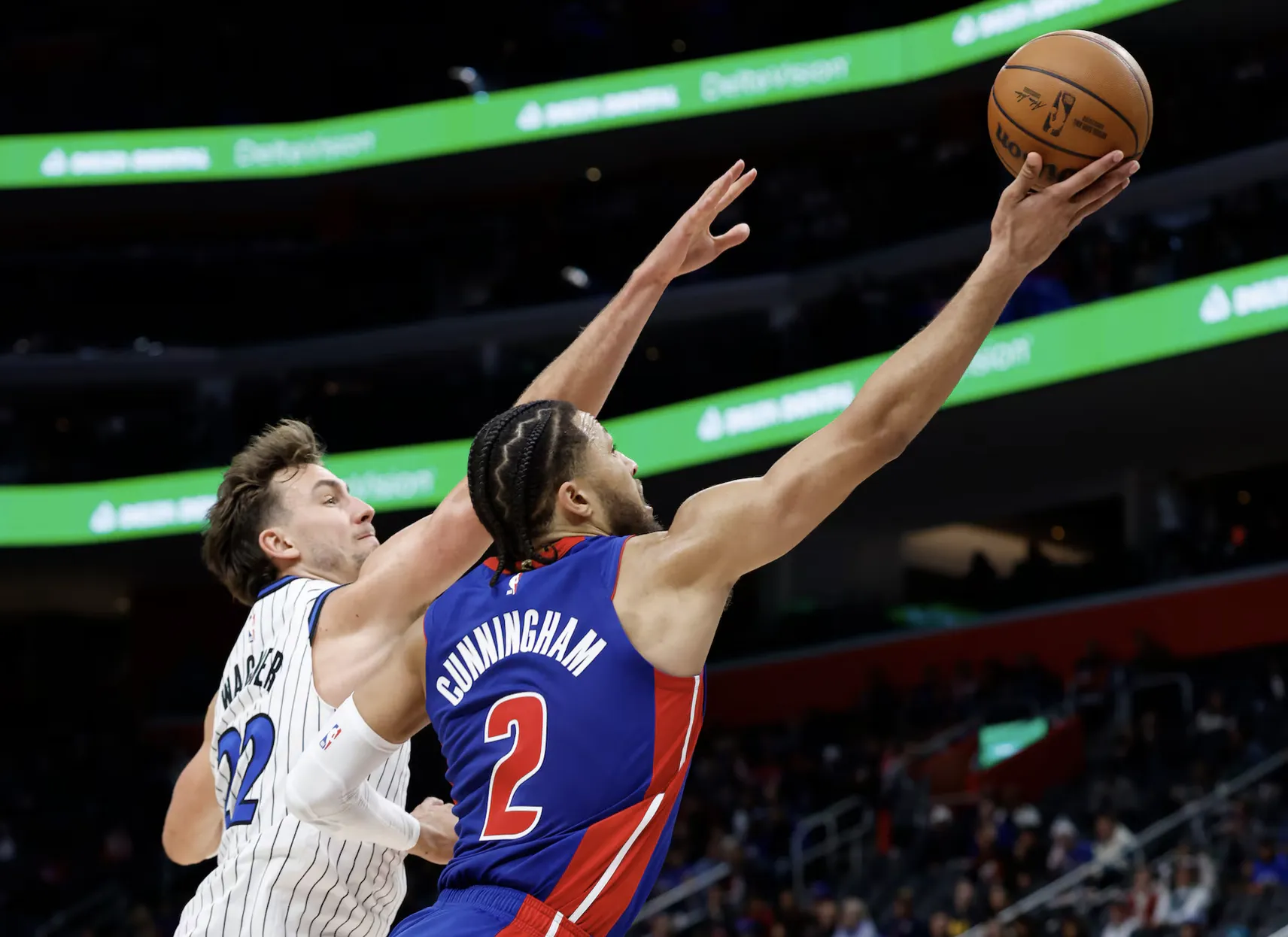 底特律活塞在主場火力全開,以 135:116 痛宰奧蘭多魔術,展現年輕球隊的進步與爆發力。比賽一開始活塞外線全面開啟,Cade Cunningham 與 Ausar Thompson 領軍打出 15:2 攻勢。魔術雖靠 Banchero 與 Franz Wagner 穩住局勢,但活塞團隊命中率高達 60%,半場就轟下 70 分,取得明顯領先。