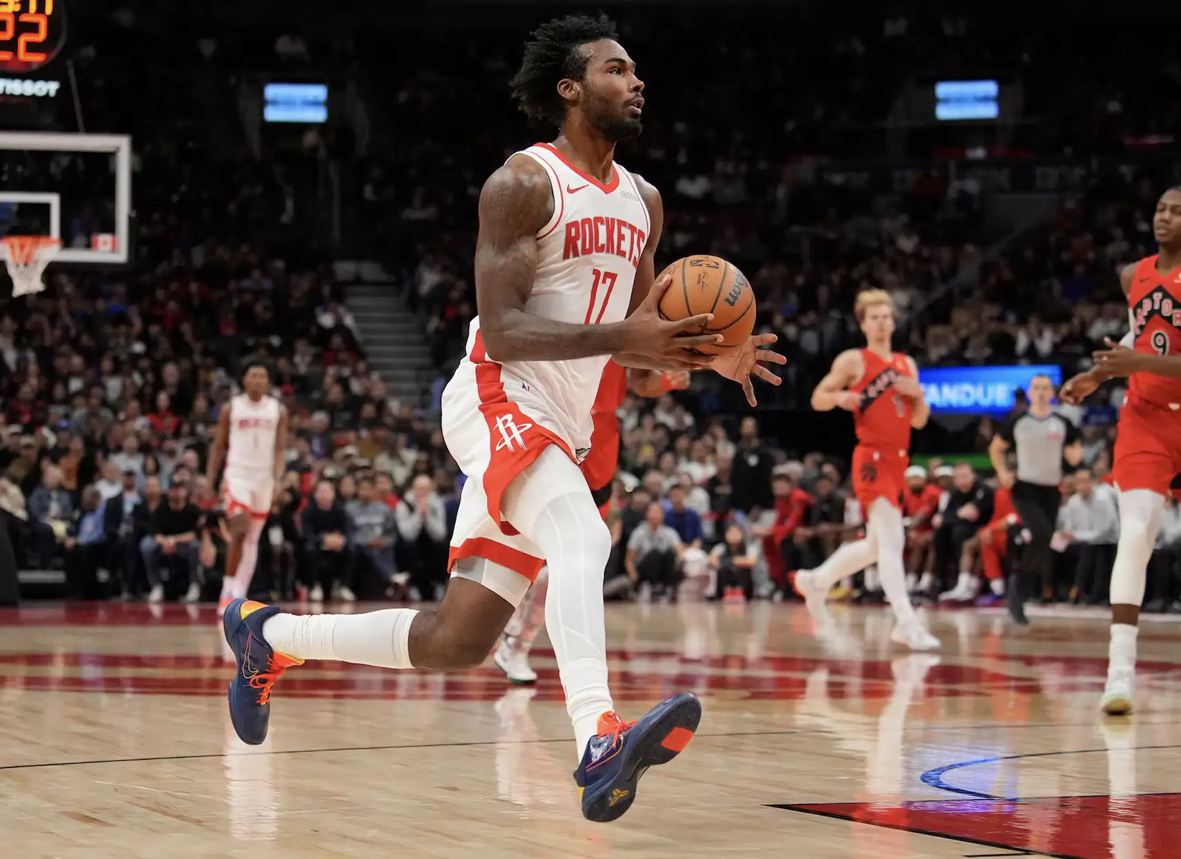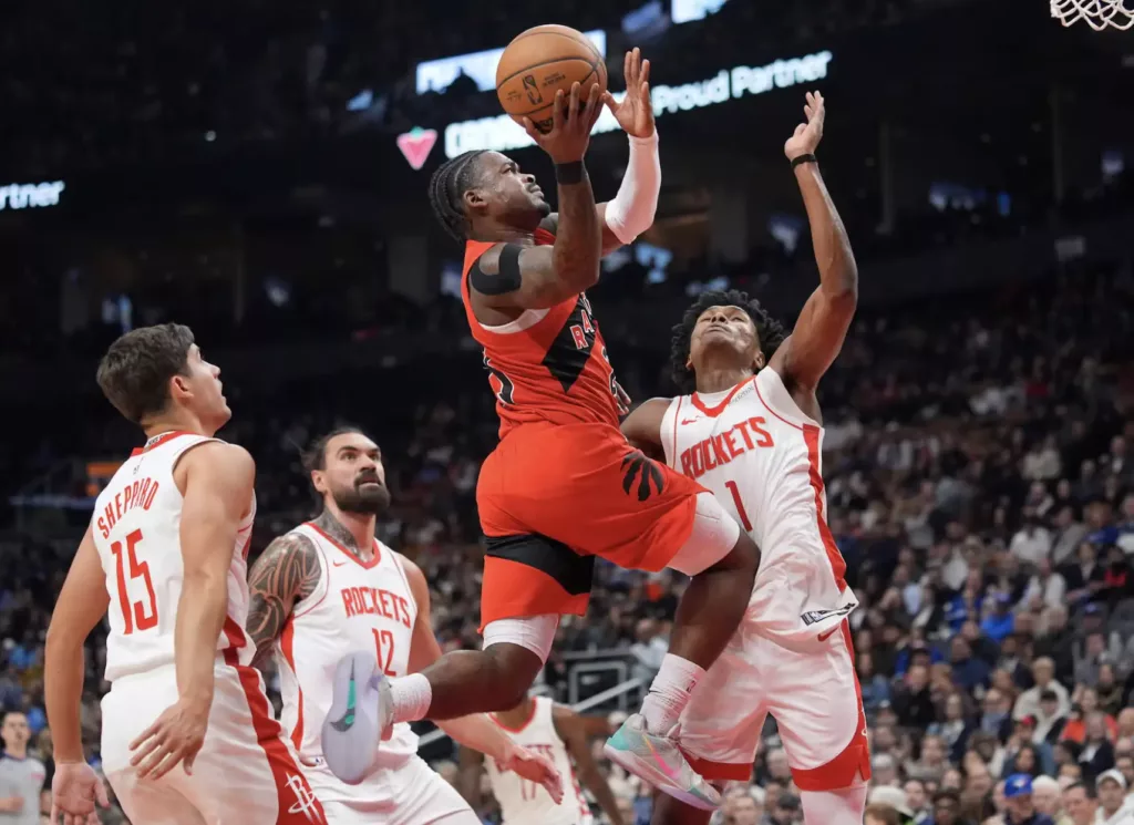 休士頓火箭在主場展現強大火力,以 139:121 擊退多倫多暴龍。開賽火箭外線迅速開啟,Jalen Green 與 Fred VanVleet 連續三分命中。暴龍雖由 Scottie Barnes 率隊追分,但防守端無法限制火箭的快速節奏,半場結束火箭已領先 72:58。