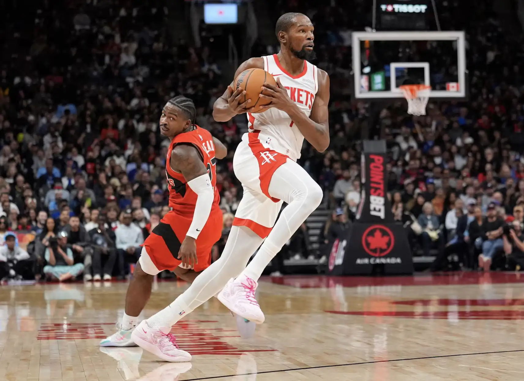 第三節火箭火力更盛,Alperen Şengün 在禁區接連取分,Green 則多次完成快攻暴扣。暴龍雖努力追分,但 Porter Jr. 與 Brooks 的外線火力延續,比分差距始終在 15 分以上。末節火箭持續掌控比賽節奏,主場球迷全場起立歡呼。