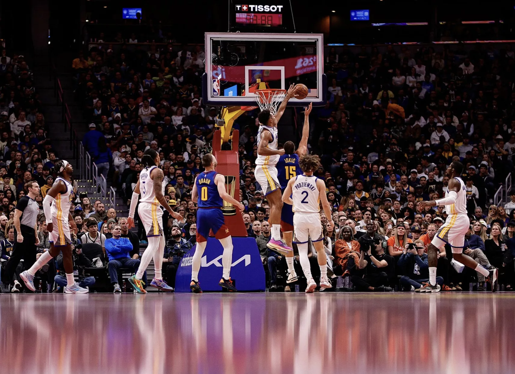 整場比賽金塊攻守表現幾乎無懈可擊,全隊命中率達 58%,三分球命中率高達 45%,並在籃板與助攻兩項數據上全面壓制勇士。Jamal Murray 與 Michael Porter Jr. 的火力支援穩定,Aaron Gordon 則在防守端成功限制 Klay Thompson 的外線。反觀勇士,Curry 雖攻下全隊最高的 30 分,但除他之外,其他主力手感冰冷,全隊三分球僅 32 投 9 中。勇士在防守輪轉與禁區保護上漏洞百出,讓金塊輕鬆取得高質量出手機會。