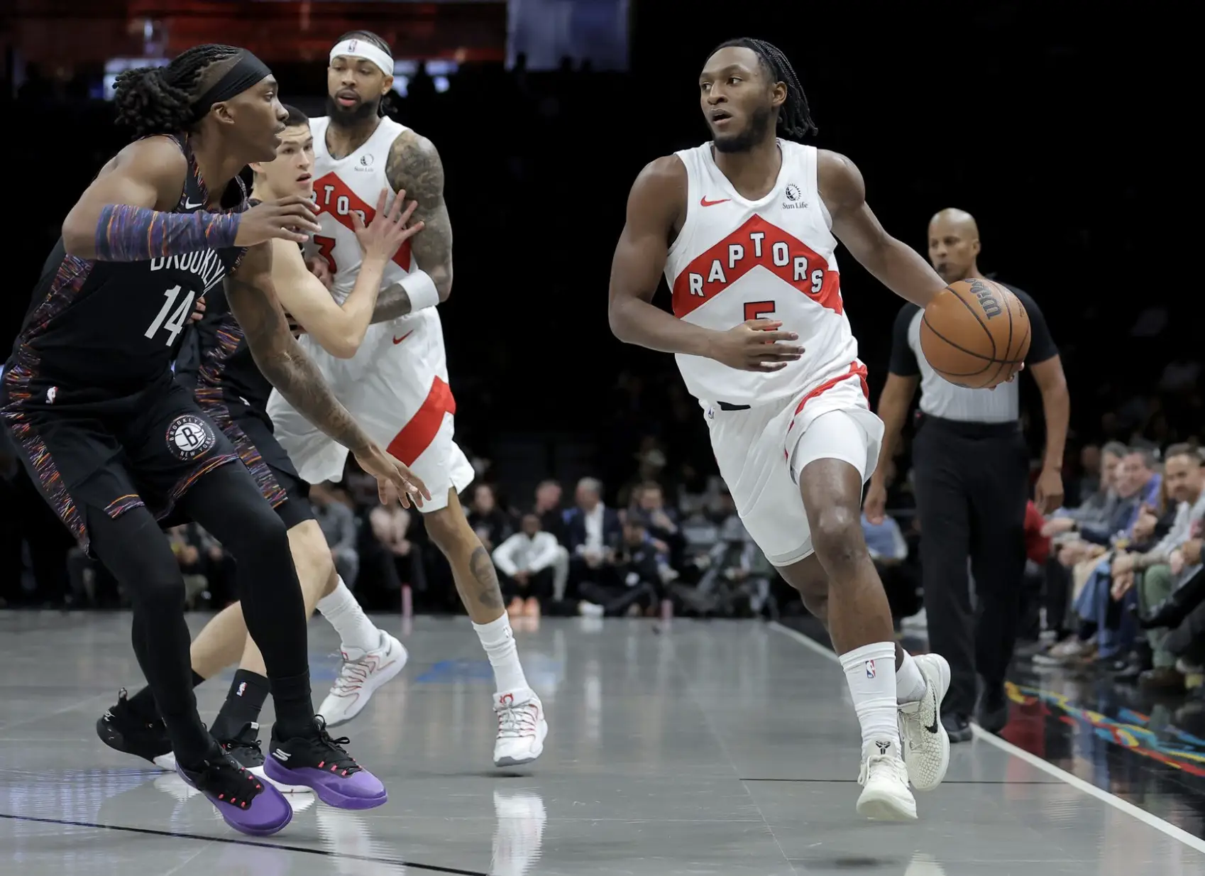 比賽一開始,Scottie Barnes 迅速進入比賽節奏,連續以中距離與切入取分,搭配 Dennis Schröder 的推節奏打法,使暴龍掌控比賽節奏。籃網則由 Mikal Bridges 與 Cameron Johnson 連手回擊,試圖在第二節追近比分,但暴龍替補群表現亮眼,特別是 Gary Trent Jr. 外線三分連中,讓比分始終維持在雙位數差距。